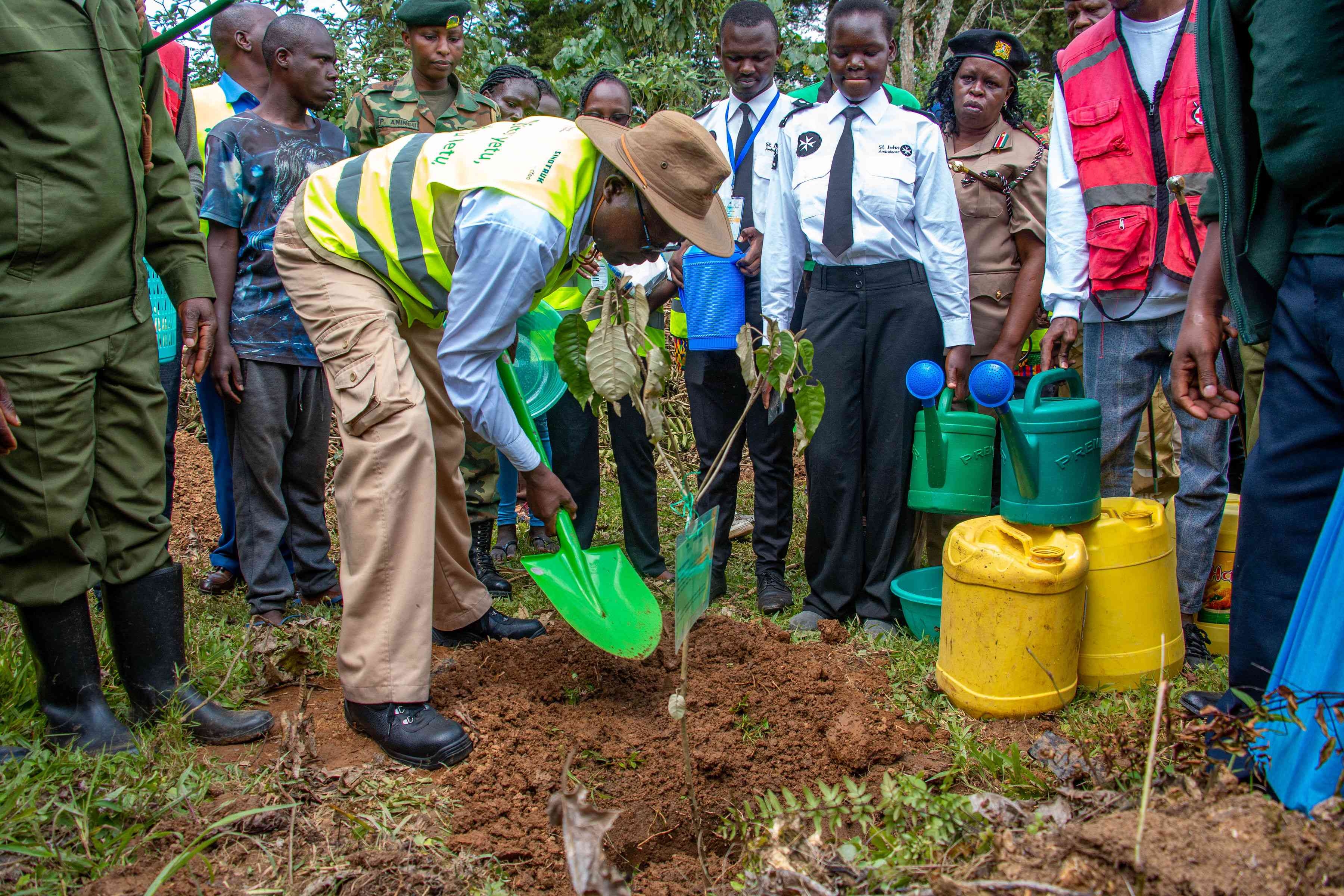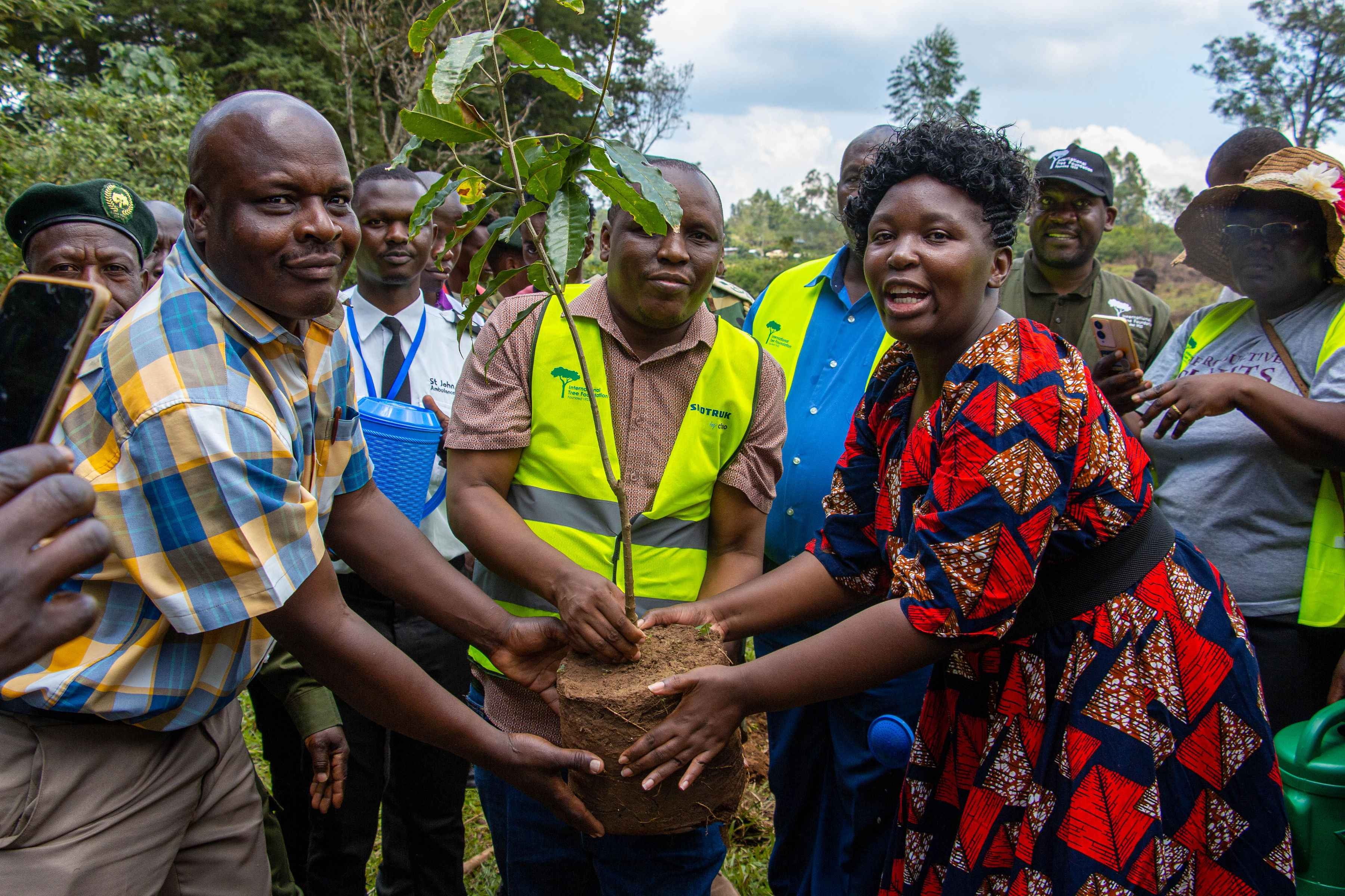 ??活動當天,來自肯尼亞林業局、國際樹木基金會、當地政府、學校、社區的700余人齊聚基蘇木地區卡卡梅加森林,栽種樹苗以恢復1公頃退化的土地。在一片歡聲笑語中,大家認真學習植樹知識和植樹方式,分工協作,共同完成了1000棵樹苗的栽種。這些樹苗不僅為卡卡梅加森林帶來了新的生機,也有效提升了當地社區對森林保護重要性的認識。